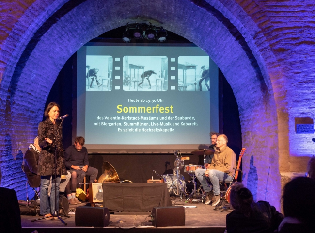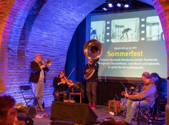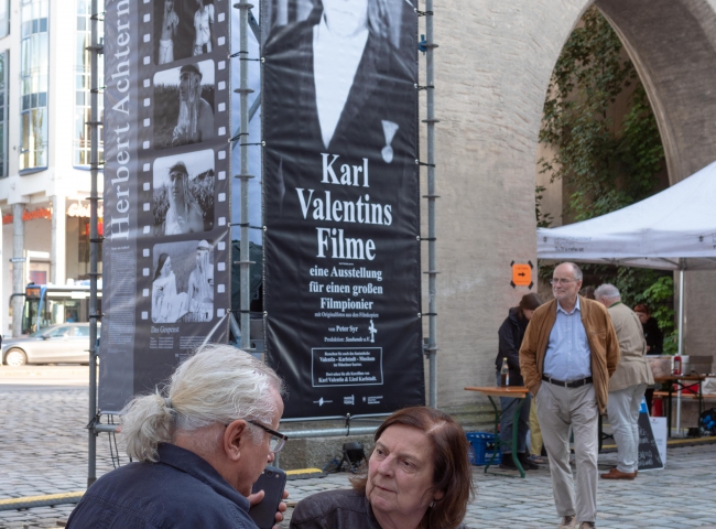 Am 14. Juni, einem wunderbar magischer Sommerabend, feierte das Valentin-Karlstadt-Musäum zusammen mit der Saubande e.V. das Sommerfest und die Ausstellungseröffnung zu „Karl Valentins Filme“ von Peter Syr. Mit Unterstützung der Saubande, des Bezirks Oberbayern und des Kulturreferates München konnte die Ausstellung im Innenhof des Isartors realisiert werden. Sie ist dort bis einschließlich 9. Oktober kostenfrei zu besichtigen.