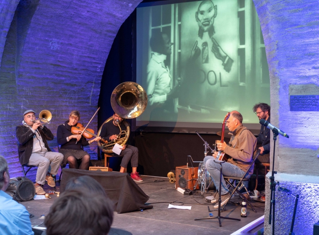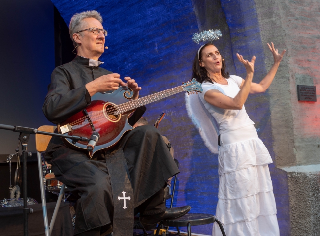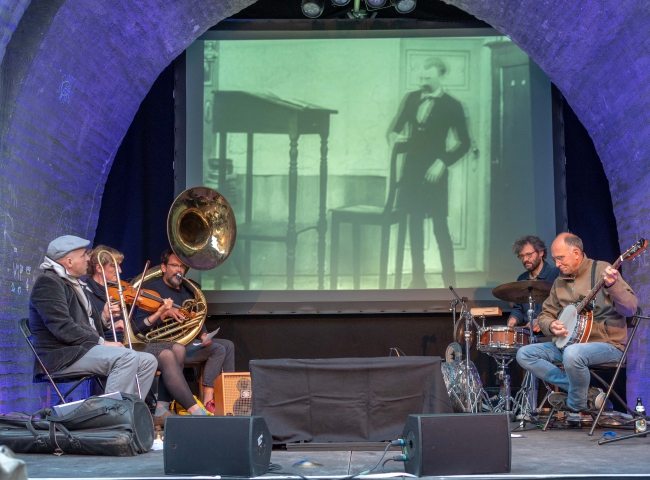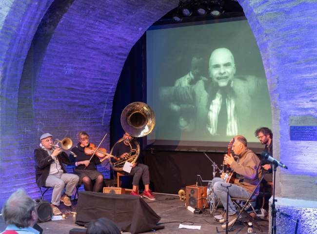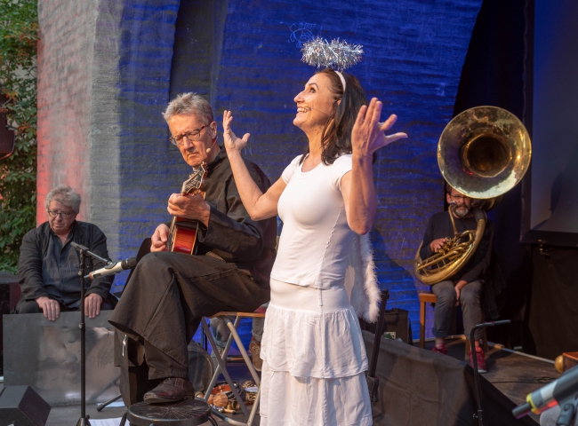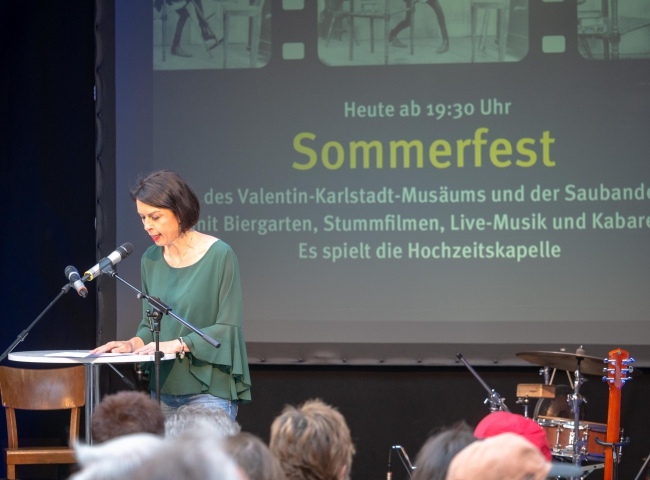 Der Abend war dem Andenken Karl Valentins zu seinem 70. Todestag gewidmet und so stand dieser unter dem Motto „Jenseits“ und „Film“. Mit einer Bewerbung beim Film eröffneten Maria Peschek und Helmut Dauner das Bühnenprogramm. Als Engel und Priester begeisterten Bele Turba und Holger Paetz. Mit einer völlig neuen Filmmusik begleitete die Hochzeitskapelle Valentins Stummfilme, die im Open Air Kino gezeigt wurden. Virtuos setzten die Musiker Evi Keglmaier, Mathias Götz, Alexander Haas und die Brüder Michael und Markus Acher die Filme in Szene.