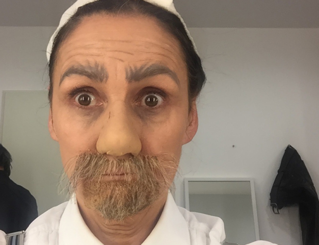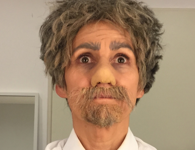 Karl Valentin wurde einmal gefragt, warum er sich immer Nasen ins Gesicht klebt und Perücken aufsetzt, wenn er auf die Bühne geht. Er antwortete: „Ich möchte nicht, dass mich Bekannte erkennen.“ Auch Liesl Karlstadt an seiner Seite war oft bis zur Unkenntlichkeit maskiert, z. B. als Kapellmeister im Stück „Die Orchesterprobe“. Jetzt kann ich nach ca. 250 Auftritten in Kostüm und Maske des Kapellmeisters in eben jenem Stück nachfühlen, welche Besonderheiten es hat, so völlig entstellt auf die Bühne zu gehen.
